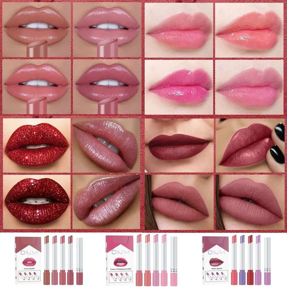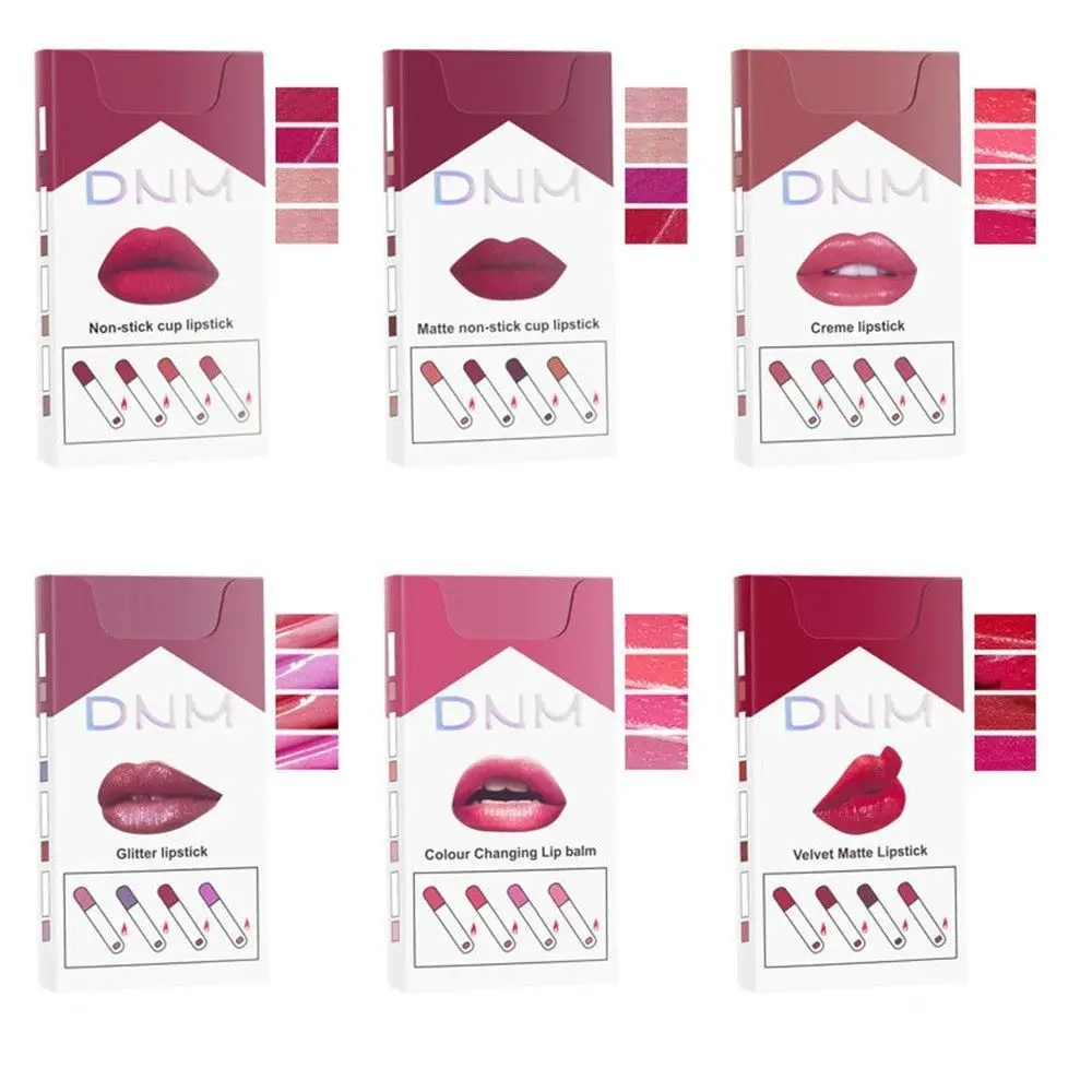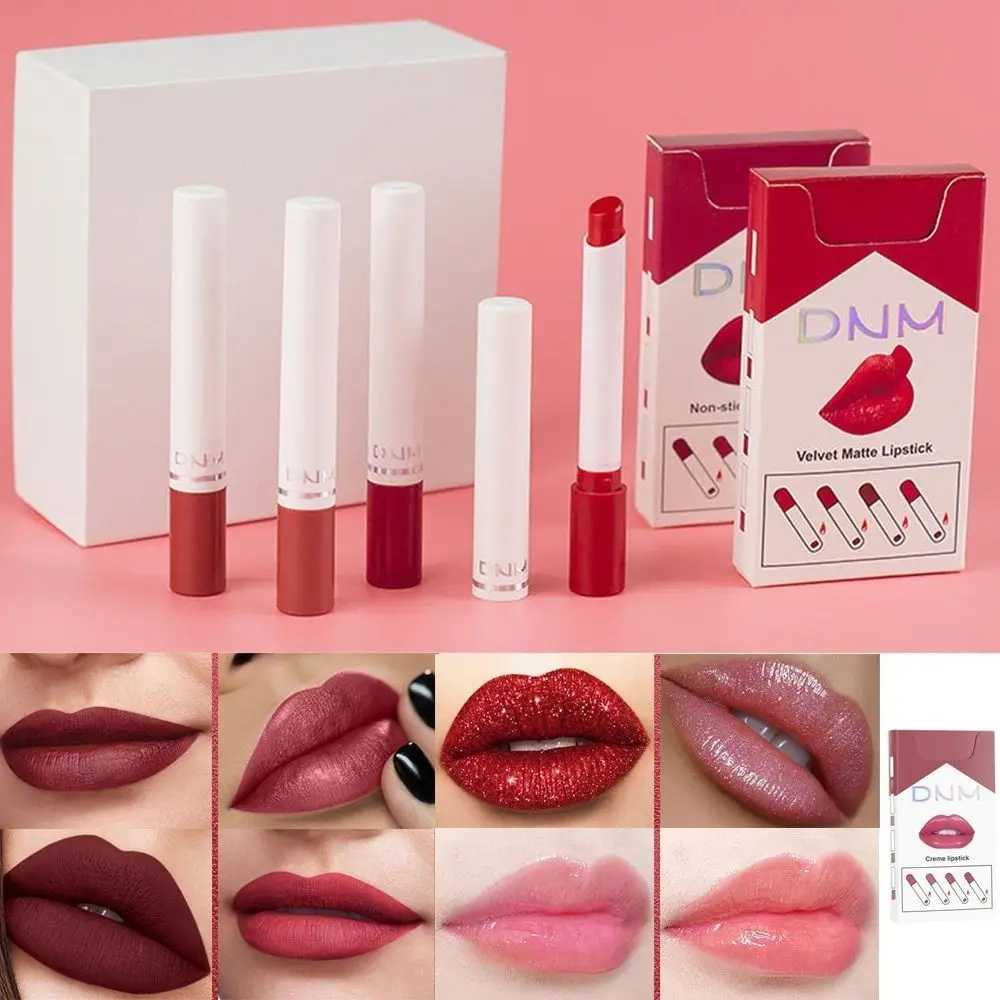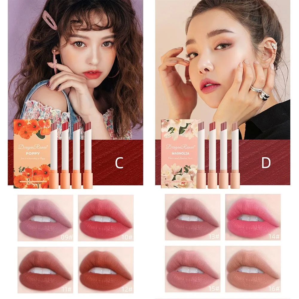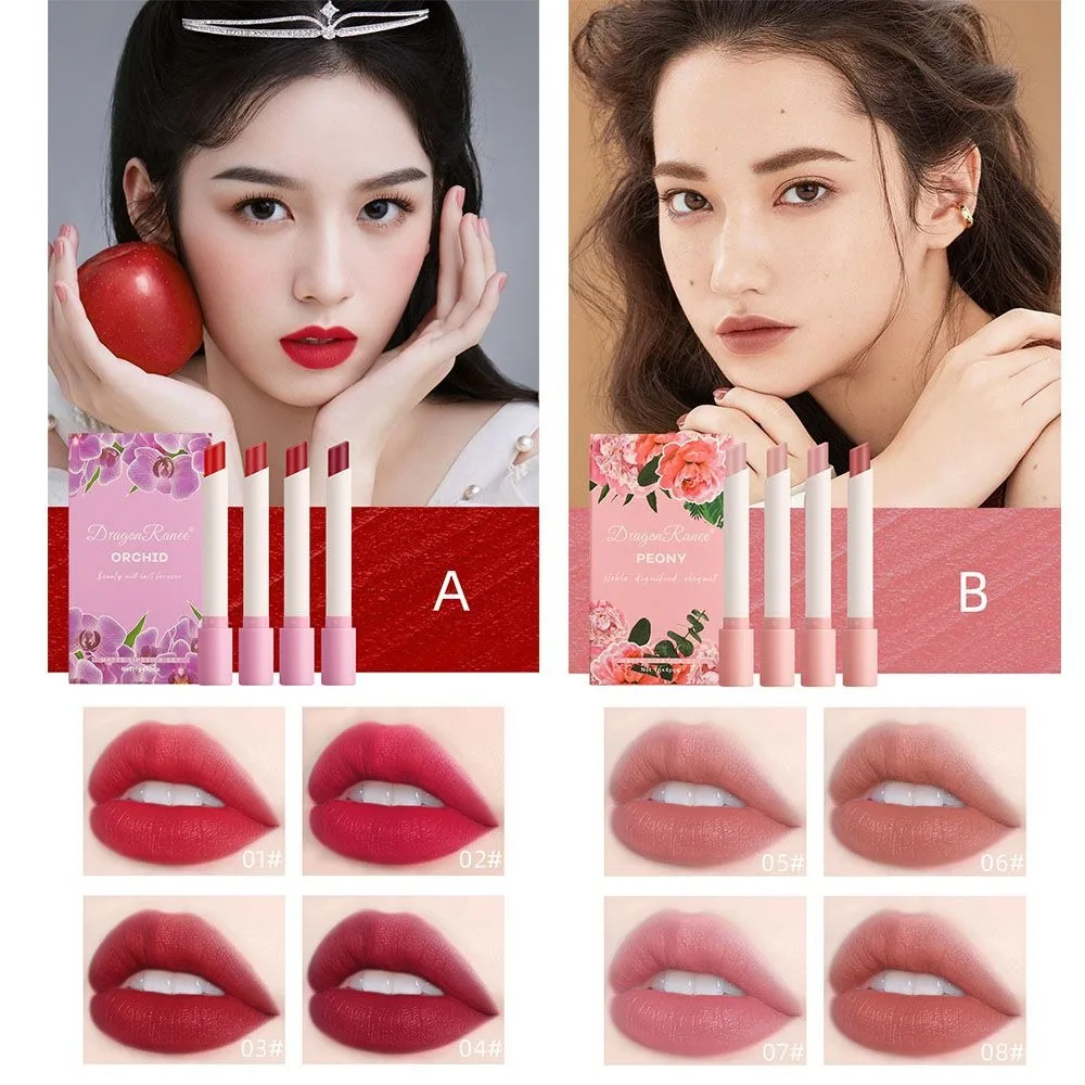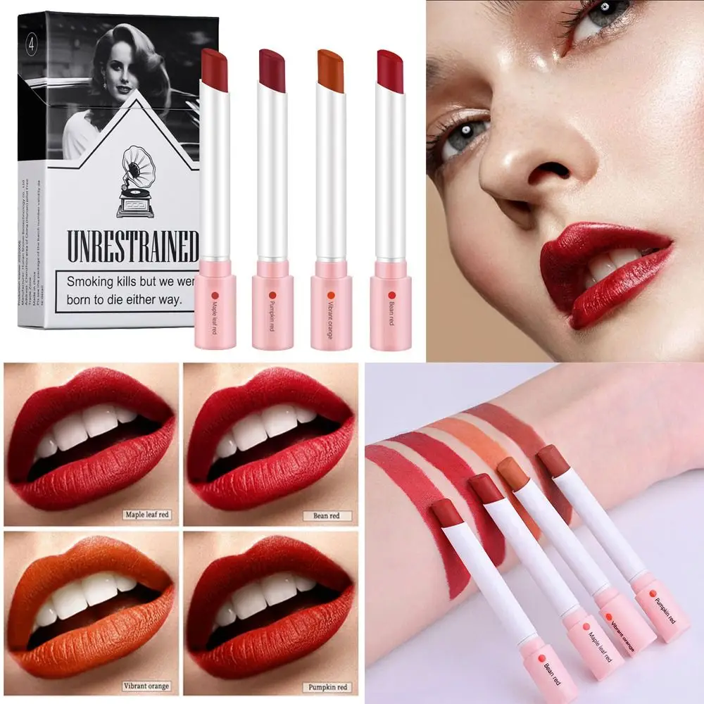 Type1:4 Colors Lipstick Set: Soft, warm matte, transparent carrot, cinnaba-r re-d, rotten tomato, cherr-y, non-Stick cup, also without fading, easy to remove with lip cleansing oil.